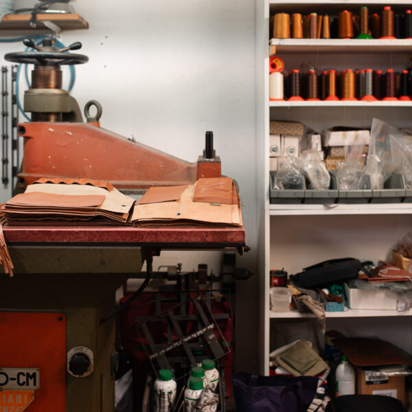 Our historic laboratory is the soul of our brand. We still cut by hand, we finish all the products by hand and with tireless meticulousness we pack each piece with the utmost attention to every detail. Generally, the tanning of hides is done in metal vats. We still use wooden barrels and only use vegetable tanning agents. The result is a very soft cowhide, wrinkled like an orange peel, which darkens with time and acquires a characteristic charm that makes each of our products unique. However, the use of cotton is not missing, in the traditional logo fabric that has always decorated a series of very successful suitcases. The innovative merit of the company, is the development of a special washable and soft leather that is part of our own collection, which we call "lavato". Before we sew the pieces of a bag together, we press them together at a high temperature. The bag can then be safely put in the washing machine and ironed like any other garment.