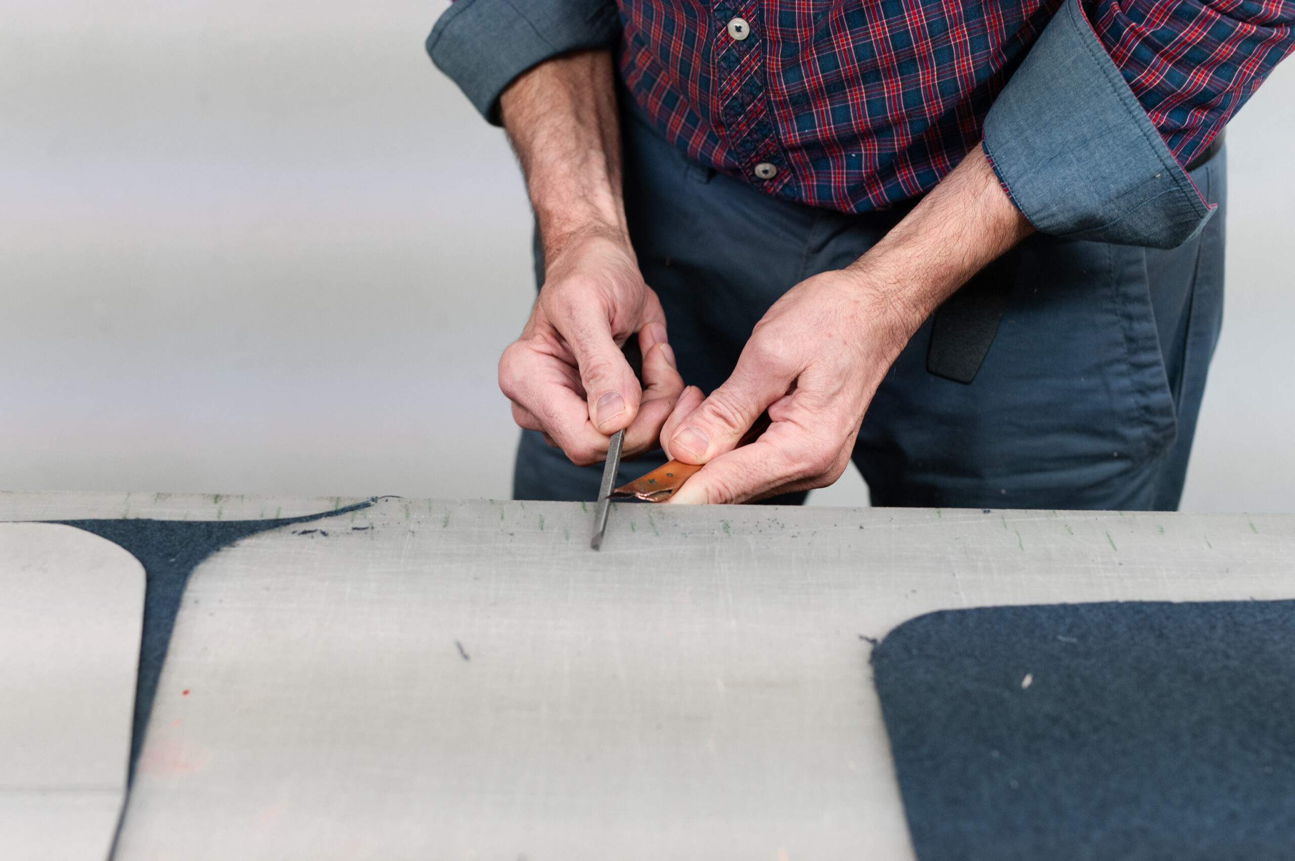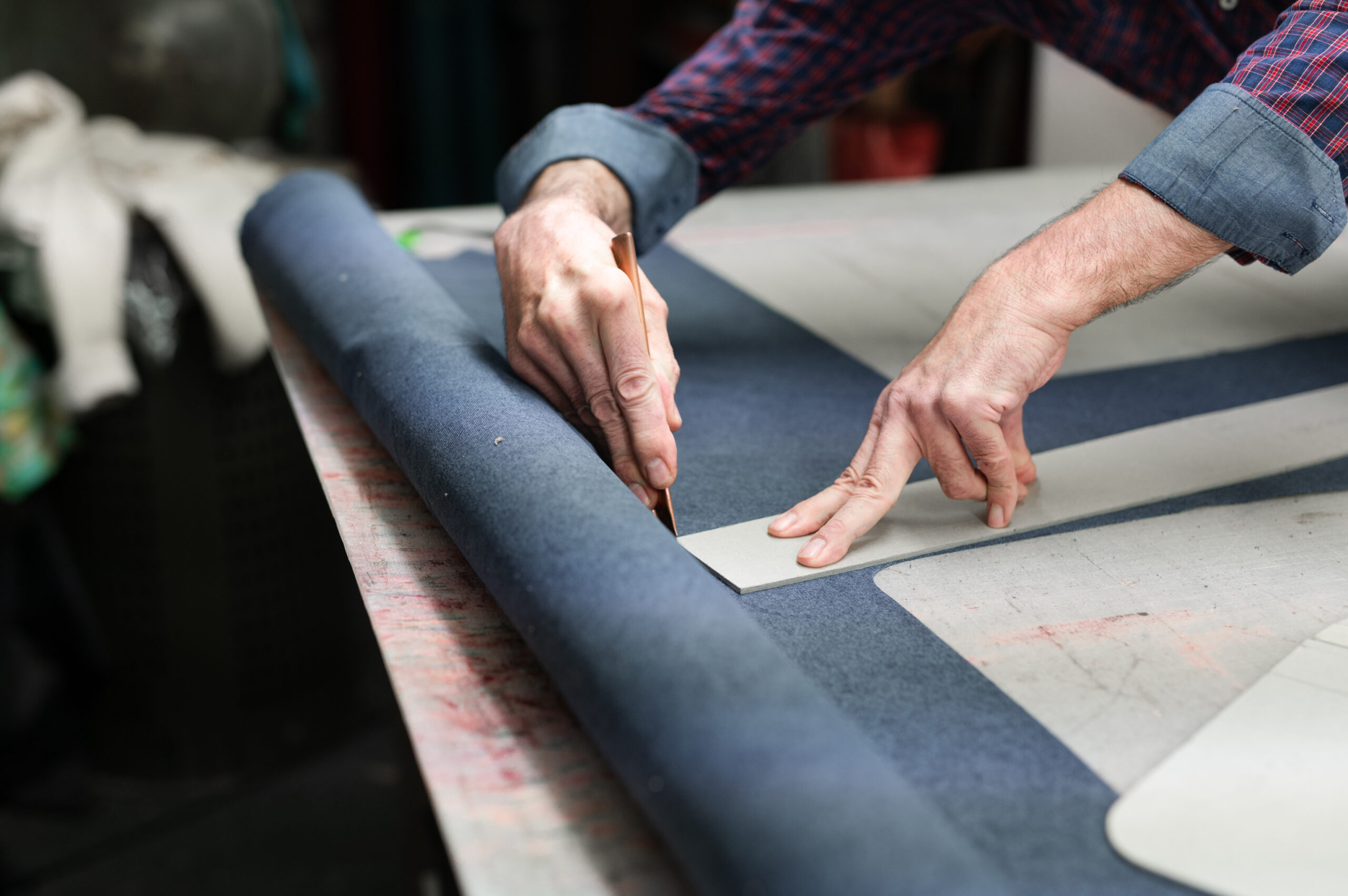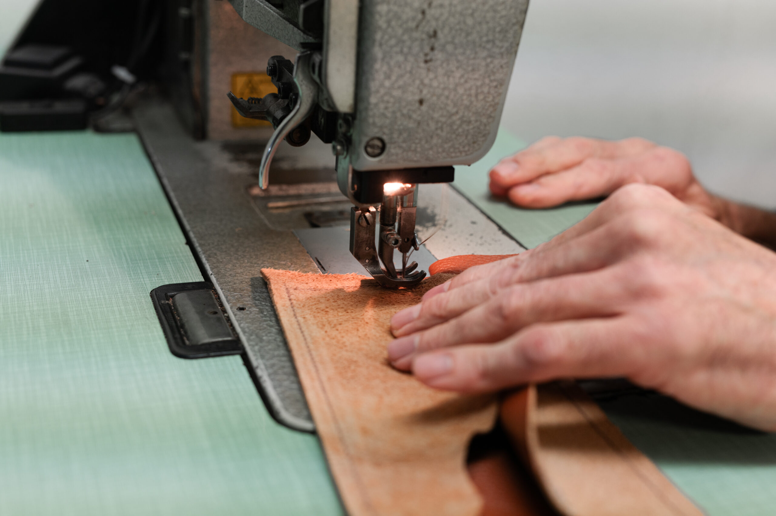 Our historic laboratory is the soul of our brand. We still cut by hand, we finish all the products by hand and with tireless meticulousness we pack each piece with the utmost attention to every detail. Generally, the tanning of hides is done in metal vats. We still use wooden barrels and only use vegetable tanning agents. The result is a very soft cowhide, wrinkled like an orange peel, which darkens with time and acquires a characteristic charm that makes each of our products unique. However, the use of cotton is not missing, in the traditional logo fabric that has always decorated a series of very successful suitcases. The innovative merit of the company, is the development of a special washable and soft leather that is part of our own collection, which we call "lavato". Before we sew the pieces of a bag together, we press them together at a high temperature. The bag can then be safely put in the washing machine and ironed like any other garment.